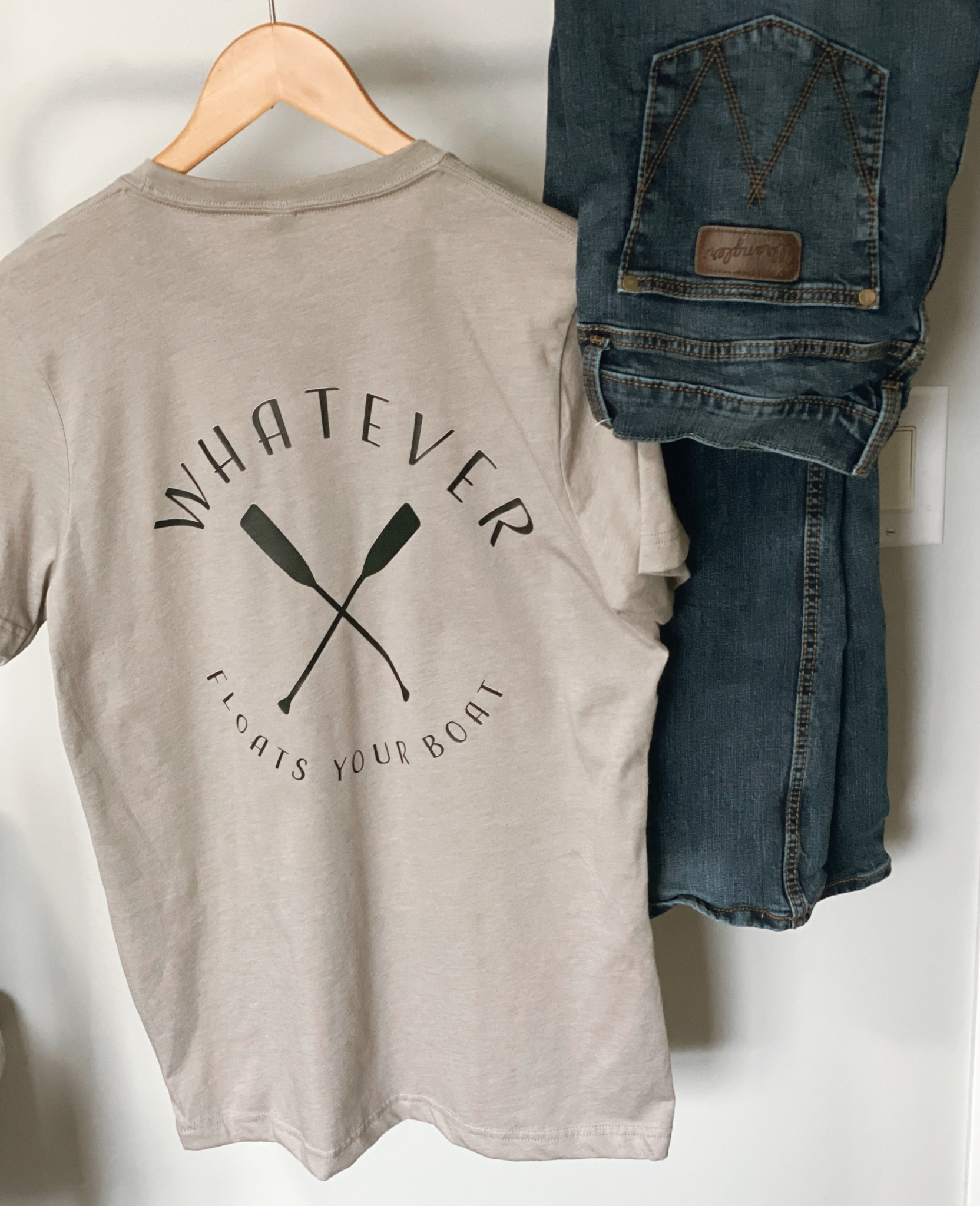 Whatever Floats Your Boat Tee with Vinyl logo on front and back.